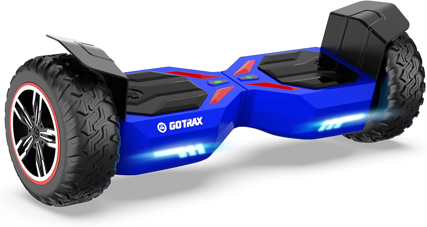 The GOTRAX E4 All Terrain Hoverboard is a rugged self-balancing scooter featuring 8.5″ off-road tires, dual 250W motors, and a 144Wh battery that provides up to 7 miles of range at a top speed of 7.5 MPH. With a built-in music speaker and UL2272 certification, it’s an excellent choice for adventurers seeking a fun and reliable ride.