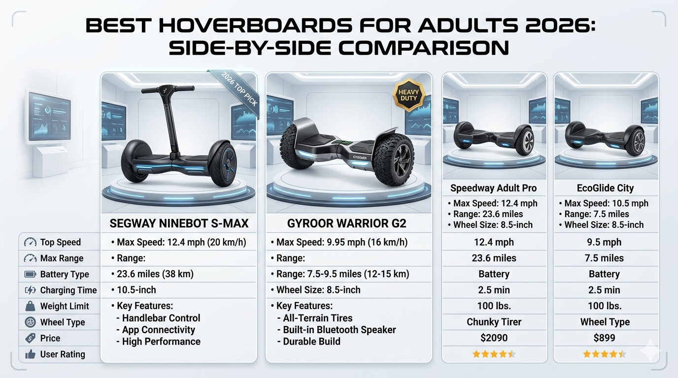 4 Full Comparison Table: Best Hoverboards for Adults (2026)